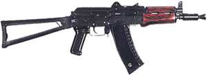 Принципиально новым в тактико-техническом плане является новый образец - укороченный автомат АКС-74У (6П26). Уступая в техническом отношении своим "собратьям", он по своему тактическому назначению аналогичен пистолетам-пулеметам. Главное его отличие от АКС-74 более короткий ствол - до 200 мм. Это снизило начальную скорость пули до 800 м/сек и прицельную дальность до 200 м, заставило отнести назад газовую камеру, изменить крепление мушки. Прицельное приспособление упрощено - сенторный прицел заменен перекидным целиком с прорезями для стрельбы на 200 и 400 м. Изменена и конструкция дульного насадка. Складной приклад такой же, как у АКС-74. Благодаря короткому стволу длина АКС-74У значительно уменьшена и составляет со сложенным прикладом 420 мм, с откидным - 675. Темп стрельбы 800 выстр/мин, боевая скорострельность одиночным огнем до 40 выстр/мин, короткими очередями до 150. Емкость магазина так же 30 патронов. Имеется модификация АКС-74У с ночным прицелом. АКС-74У предназначен для действий на резко пересеченной местности, в населенных пунктах и оборонительных сооружениях. Состоит на вооружении с 1979 г. воздушно-десантных войск, связистов, саперов, механиков-водителей боевых машин, расчетов ракетных пусковых установок, а также специальных милицейских подразделений. К созданию такого оружия приступили с середины 70-х годов после принятия промежуточного патрона малого калибра. В разработке принимали участие многие конструкторы; в частности довольно простой и компактный автомат АГ-043 разработал С.Г. Симонов. В 1980 г. поступил на вооружение образец Калашникова, созданный на базе узлов и деталей уже производившегося АКС-74, что значительно упрощало производство, освоение и обслуживание нового типа оружия. Ствол АКС-74У укорочен до 206,5 мм, начальная скорость пули снизилась до 735 м/с. Прицельная дальность при этом уменьшилась до 400 м. Укорочение ствола заставило отнести назад газовую камеру, изменить крепление мушки. Соответственно уменьшили длину штока поршня и газоотводной трубки. Большее давление газов у дульного среза ствола потребовало установки усиленного пламегасителя. Отнесение назад газовой камеры уменьшило время цикла автоматики и повысило темп стрельбы до 700 выстр./мин. Для лучшей стабилизации пули в полете при коротком стволе увеличили крутизну нарезов - длина хода нарезов уменьшилась с 200 до 160 мм. Правда, при этом увеличивается напряжение в оболочке пули. Секторный прицел заменили перекидным L-образным целиком, рассчитанным на дальности стрельбы до 350 и 350-500 м (установки "П и "500"), вынесение прицела на крышку ствольной коробки позволило несколько удлинить линию прицеливания (235 мм). Крышка ствольной коробки выполнена откидывающейся вверх на поперечной оси. АКС-74У имеет модификации АКС-74УН и АКС-74УН2, приспособленные для установки ночных прицелов НСПУ и НСПУМ. Вариант АКС74-УБ (6П27) приспособлен для крепления на дульной части ствола ПБС ("прибора бесшумной стрельбы"), а магазин его снаряжается специальными патронами с дозвуковой скоростью пули. АКС-74У имеет очень небольшие габариты: длина его 730 мм с откинутым прикладом и 490 мм со сложенным: масса его не превышает 3 кг. В тактическом (но не в техническом) плане такое оружие является аналогом пистолета-пулемета. Главная его выгода по сравнению с пистолетом-пулеметом - единый с остальными образцами легкого с